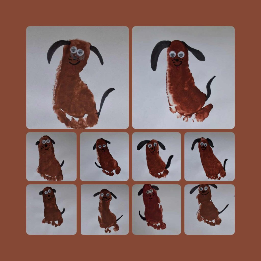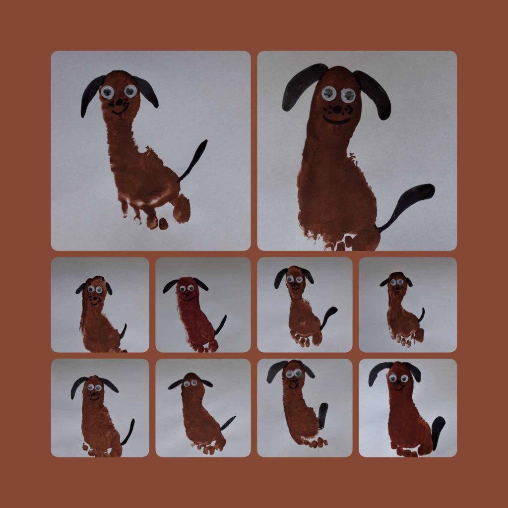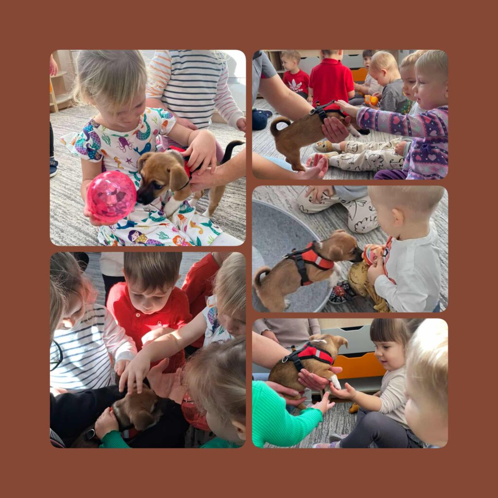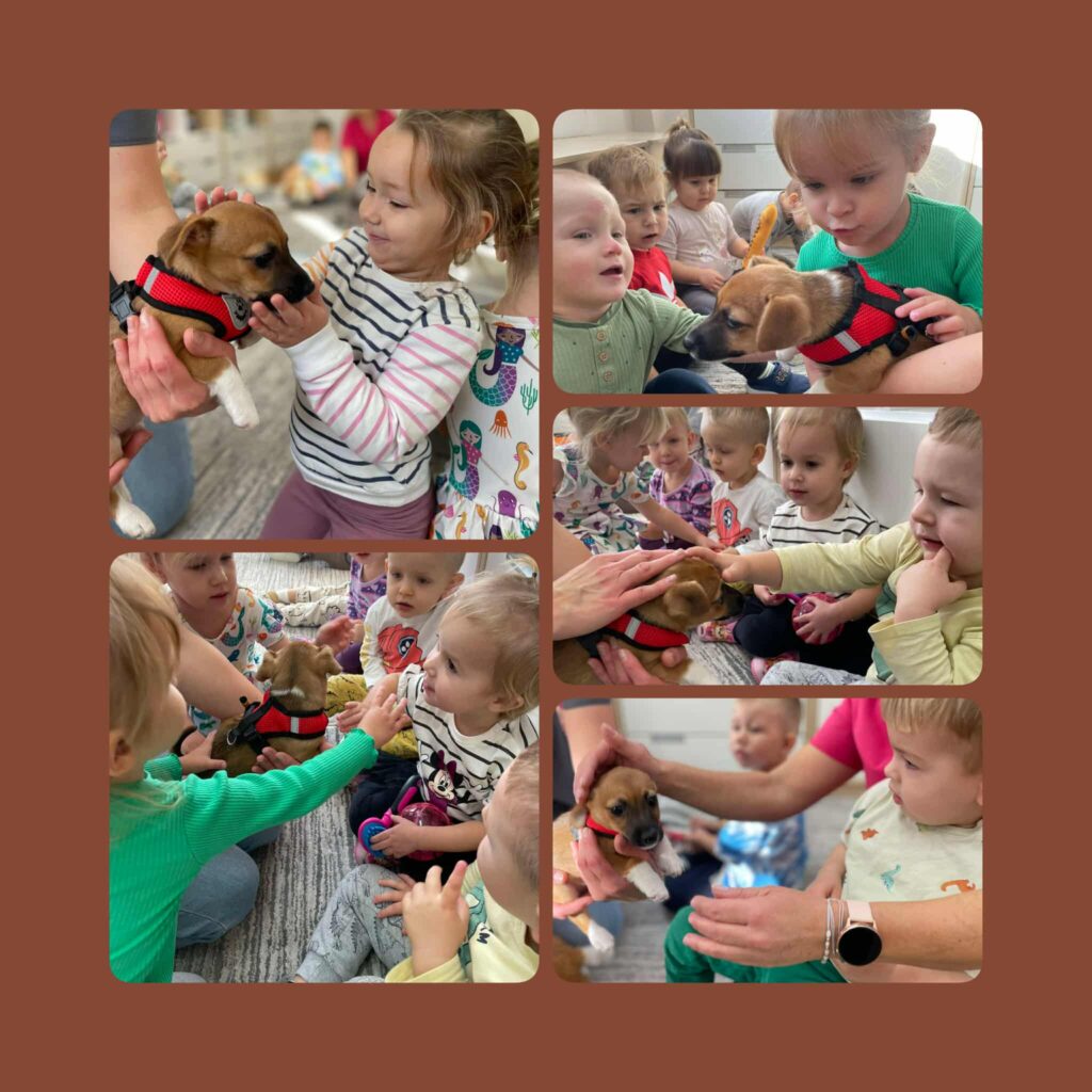 Domowi ulubieńcy ten temat wywołał wiele uśmiechów na twarzach dzieci. Kontakt ze zwierzetami uczy empatii, delikatności i odpowiedzialności. Mieliśmy okazję pobyć i pobawić się z radosnym szczeniakiem Inką. Dowiedzieliśmy się w jaki sposób trzeba nią opiekować. Następnie pomalowaliśmy stopy farbą następnie z jej odbicia wyszła postać śmiesznego pieska. Poznaliśmy zwierzęta, które mogą stać się naszymi domowymi pupilami i odkrywaliśmy je na zajęciach sensorycznych.