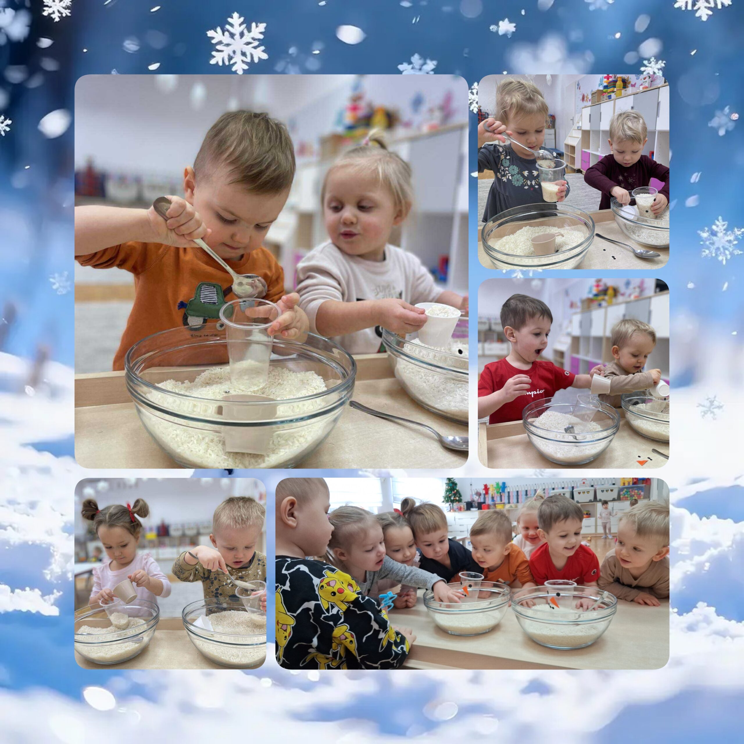 Zimowe aktywności sensoryczne to świetny sposób na zabawę i rozwój. Zrobiliśmy sztuczny śnieg z pianki i sody – dzieci stworzyły z tego zimowego bałwanka, a także wyścigi – kto pierwszy napełni kubek-bałwanek ryżem?